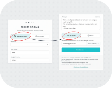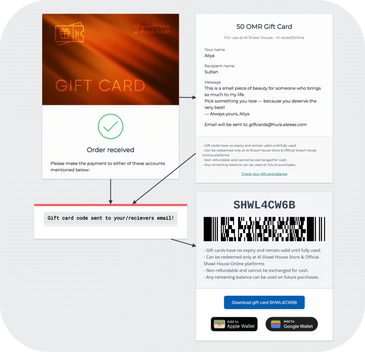 Once your payment is confirmed by Al Shawl House, you’ll receive the gift card by email.